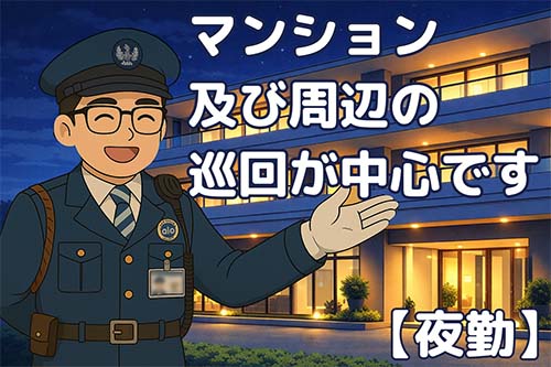 | 職種 | 夜間常駐警備スタッフ ★安定勤務! |